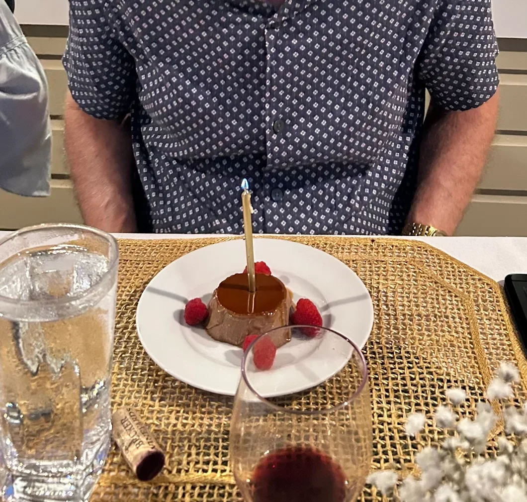 “Chef Marvin and Ryan made our 6-person birthday dinner an unforgettable experience! Each of the four courses were outstanding. The seared scallops appetizer was perfectly seasoned and cooked to perfection. The seasonal salad (grilled peaches, burrata, and a prickly pear dressing) was loved by all. And the rack of lamb was the best lamb any of us have had. The dessert, a dark chocolate flan with raspberries, was decadent!